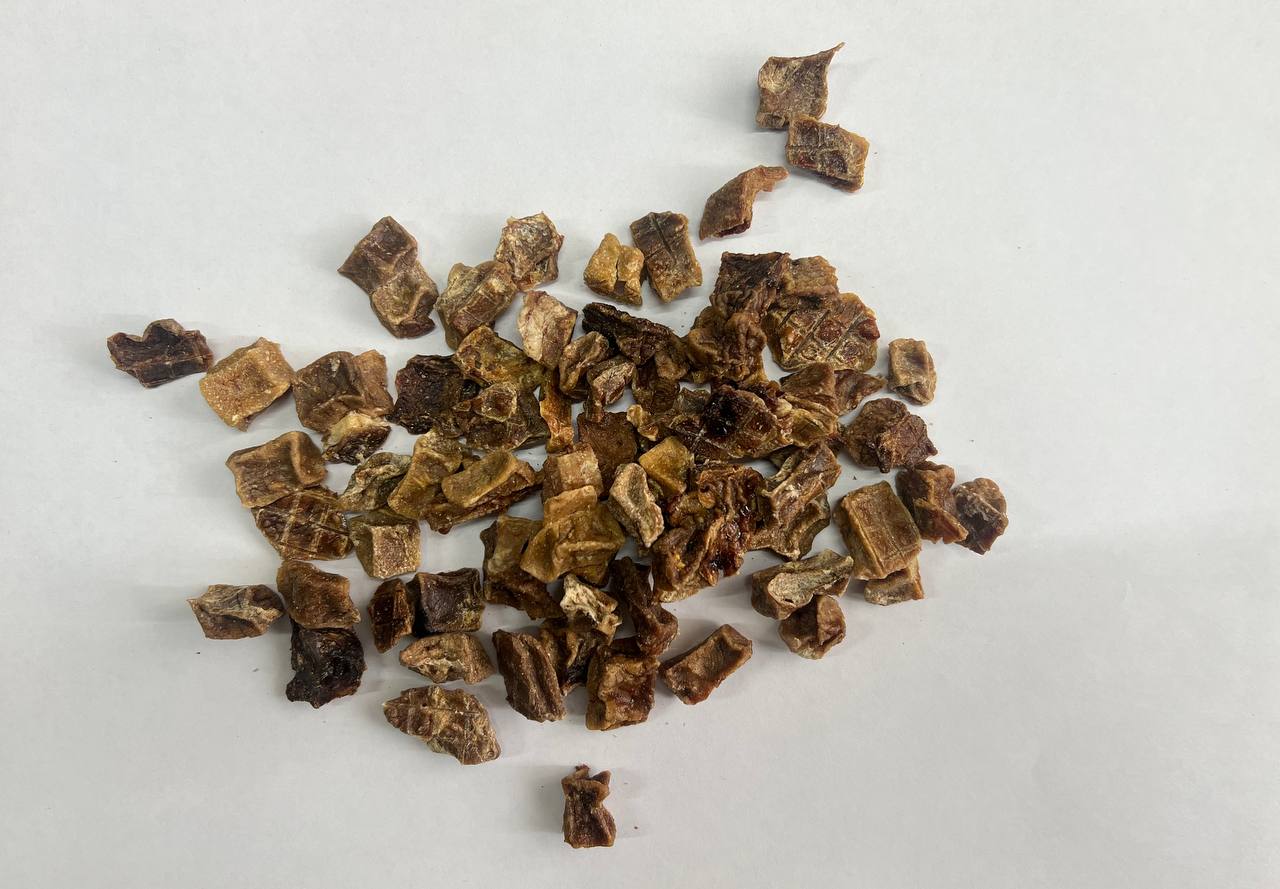 Сушеное говяжье вымя богато эластином и коллагеном — важными белками, которые отвечают за состояние волос и кожи. Также вымя содержит железо, йод, натрий, кальций, калий и фосфор, а также витамины В1, В2, РР, которые сохраняются в продукте благодаря технологии сушки. Употребление вымени повышает гемоглобин, снижает холестерин, восстанавливает силы, оказывает полезное воздействие на сердечно-сосудистую систему, работу головного мозга, улучшает обмен веществ животного. Данная добавка будет отличным дополнением к основному рациону, а также хорошим лакомством при дрессировке собаки.