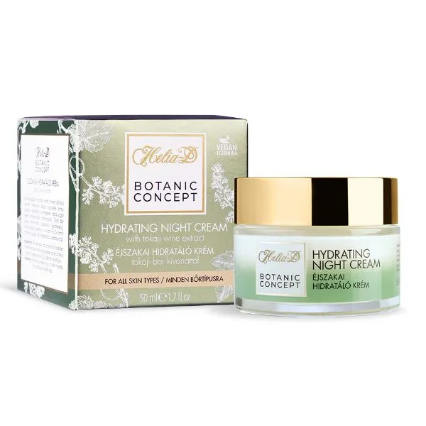 Helia-D Botanic Concept Hydrating Night Cream — это насыщенный увлажняющий ночной крем для всех типов кожи, созданный для интенсивного восстановления кожи во время сна. Крем обладает веганской формулой и содержит тщательно подобранные натуральные активные компоненты, которые помогают коже выглядеть свежей, увлажнённой и сияющей уже с утра.