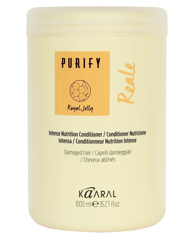 Обогащенный пчелиным маточным молочком кондиционер для поврежденных волос Kaaral Purify Reale Conditioner ухаживает за кутикулой волос, восстанавливает и устраняет признаки пористости.