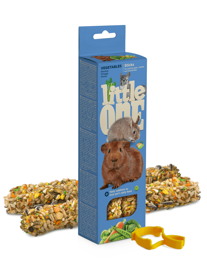 Палочки с овощами — это прекрасное лакомство для морских свинок, кроликов и шиншилл. Лакомство отличается широким разнообразием овощей в составе, в числе которых горох, морковь, капуста, порей, сельдерей и шпинат. Палочки являются вкусным и полезным дополнением к рациону травоядных грызунов, а также источником необходимых им витаминов и минералов. Основа лакомства — буковый стержень, который служит отличным инструментом для стачивания постоянно растущих зубов.
