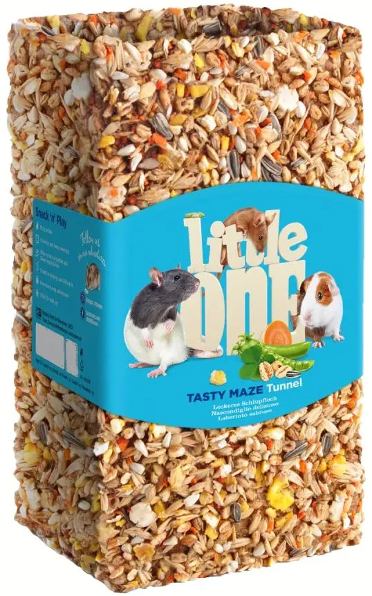 Little One Туннель средний «Вкусная лазейка» — аппетитное, полностью съедобное лакомство-игрушка, созданное из разных видов воздушных зерен, плющеных ингредиентов и множества других разнообразных компонентов. Туннель идеально подойдет для морских свинок и крыс, а также придется по вкусу другим видам всеядных декоративных животных.