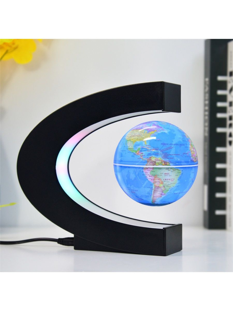 Левитирующий глобус с подсветкой сочетает современный дизайн и передовые технологии. Благодаря магнитному подвесу, глобус словно парит в воздухе, создавая эффект волшебства. Это не только стильное украшение рабочего стола или интерьера, но и увлекательный предмет для изучения географии, подходящий для детей и взрослых.
