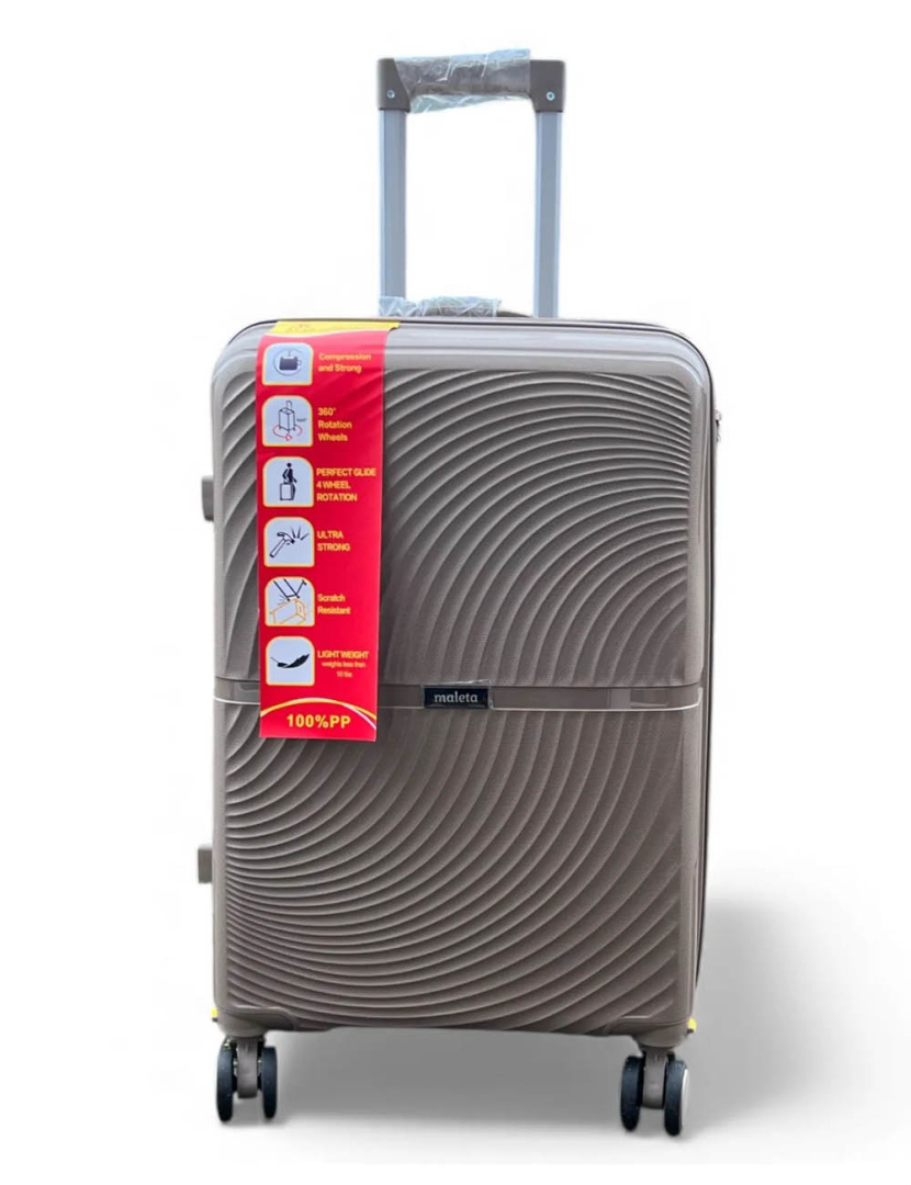 Средний чемодан MALETA PP-508 — удобная и практичная модель для путешествий и поездок. Корпус изготовлен из прочного полипропилена, который защищает вещи от влаги, ударов и царапин. Благодаря легкому весу и продуманной конструкции чемодан обеспечивает комфорт при транспортировке.