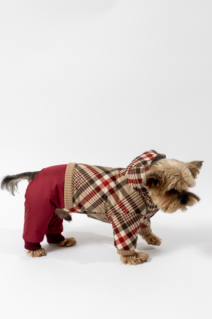 Непродуваемая плащевая ткань защищает от ветра и лёгкой сырости, а продуманный крой не стесняет движения: питомец свободно бегает, садится и лежит.
