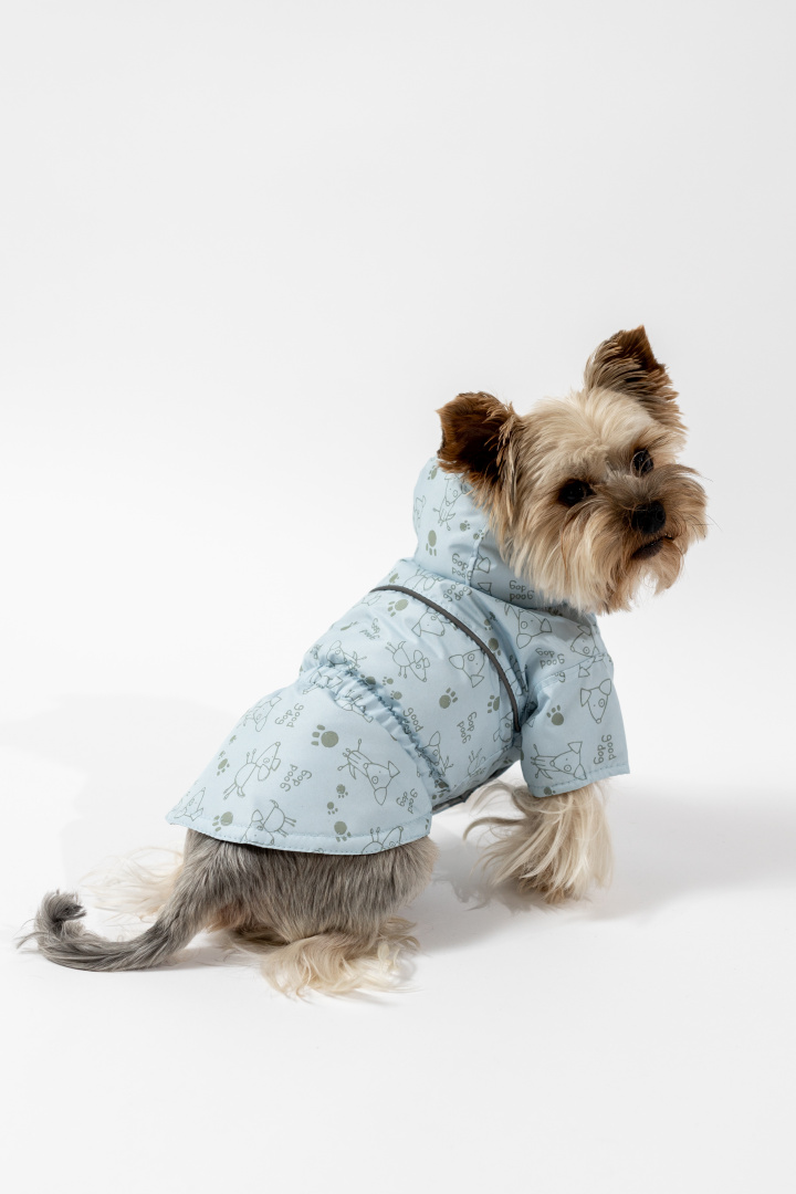 Лёгкая голубая куртка-дождевик создана для комфортных городских прогулок в межсезонье. Верх из плащевой ткани защищает от ветра и мелкого дождя, а подкладка на стёганом синтепоне бережно удерживает тепло без лишнего объёма. Анатомическая посадка не стесняет движения — питомцу удобно бегать, сидеть и лежать. Капюшон прикрывает уши от мороси, светоотражающая полоса на спинке повышает заметность в сумерках.