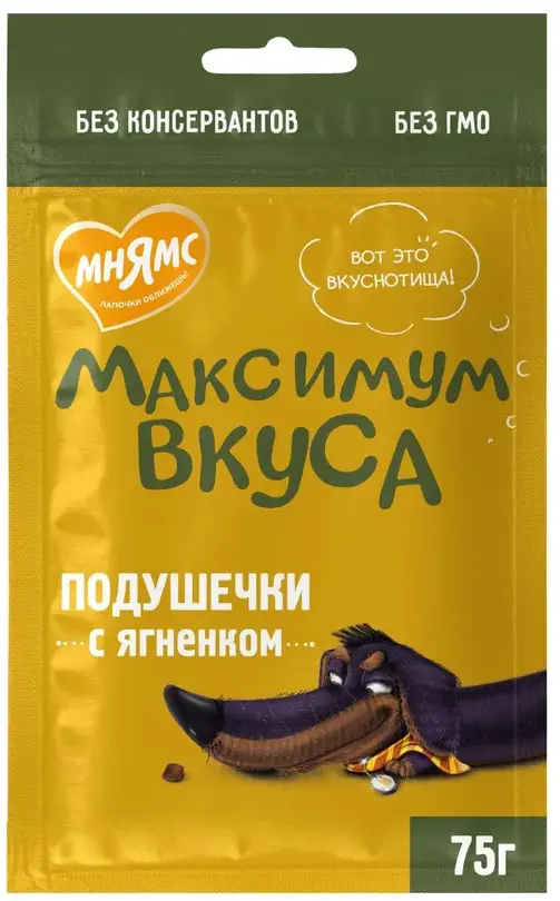 Мнямс «Максимум вкуса» — аппетитные подушечки с ягненком, созданные специально для собак с учетом их физиологических особенностей. Лакомство разработано при участии ветеринарных врачей и отлично подходит для поощрения питомца во время игр, прогулок и тренировок.