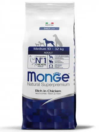 Monge (Монж) Dog Daily Line Medium сухой корм из мяса курицы для взрослых собак средних пород 12 кг.