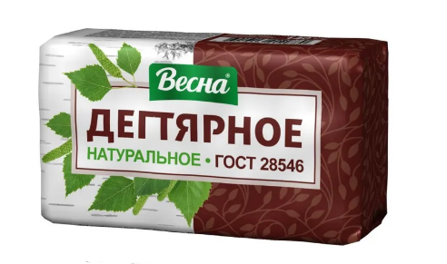 Натуральное мыло для умывания Весна 140г с березовым дегтем предназначено для кожи рук, лица, тела, для ванночек ног.