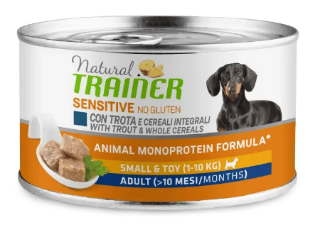 Trainer Natural Sensitive Small&Toy Adult (Форель) — консервированный цельнозерновой корм для взрослых собак мелких пород с чувствительным пищеварением.