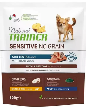 Trainer Natural Sensitive No Grain Mini Adult (Форель) - беззерновой корм для взрослых собак мелких и карликовых пород с чувствительным пищеварением.