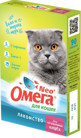 L-карнитин предупреждает возникновение избыточного веса Таурин поддерживает работу сердечно-сосудистой системы Новозеландские зеленые мидии укрепляют хрящевую ткань суставов Омега-3 кислоты поддерживают иммунитет и улучшают состояние кожи и шерсти Пивные дрожжи натуральный источник витаминов группы В СОСТАВ: Дрожжи пивные, Молоко сухое, L-карнитин, Таурин 81% кошек поедают Омега Neo+ с удовольствием (протестировано на группе из 118 кошек) 90 табл.