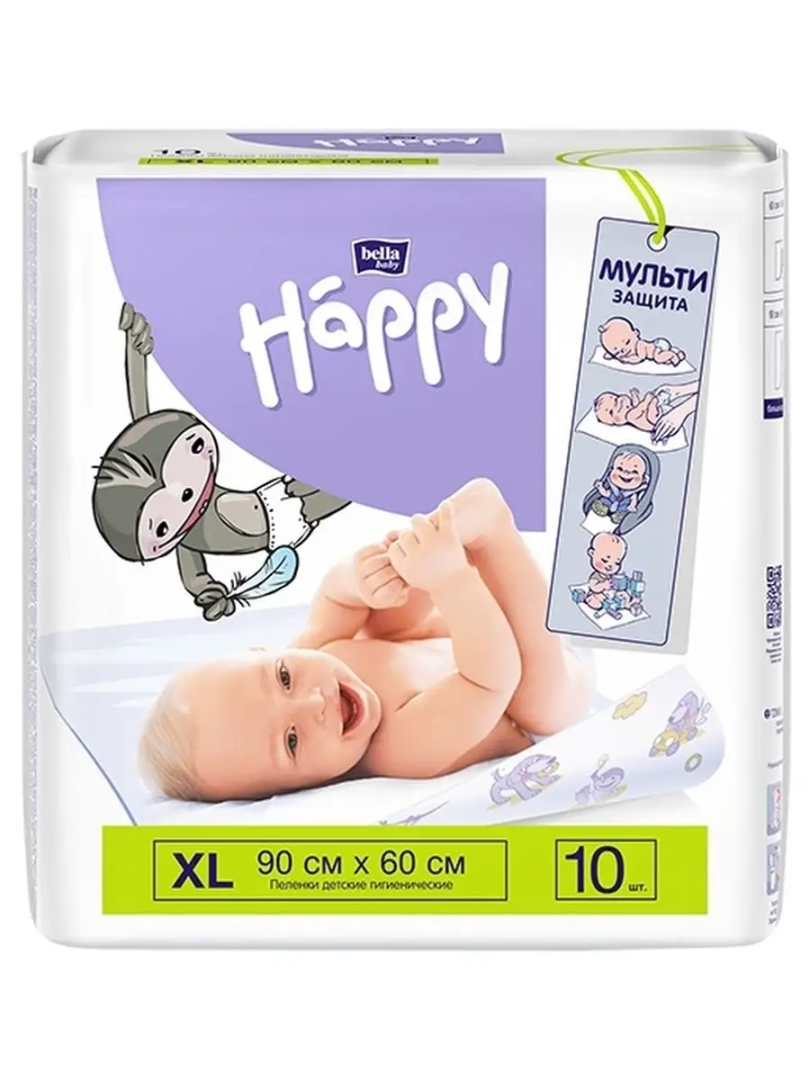 Размер пеленок 60 х 90 см., в упаковке 10 шт.