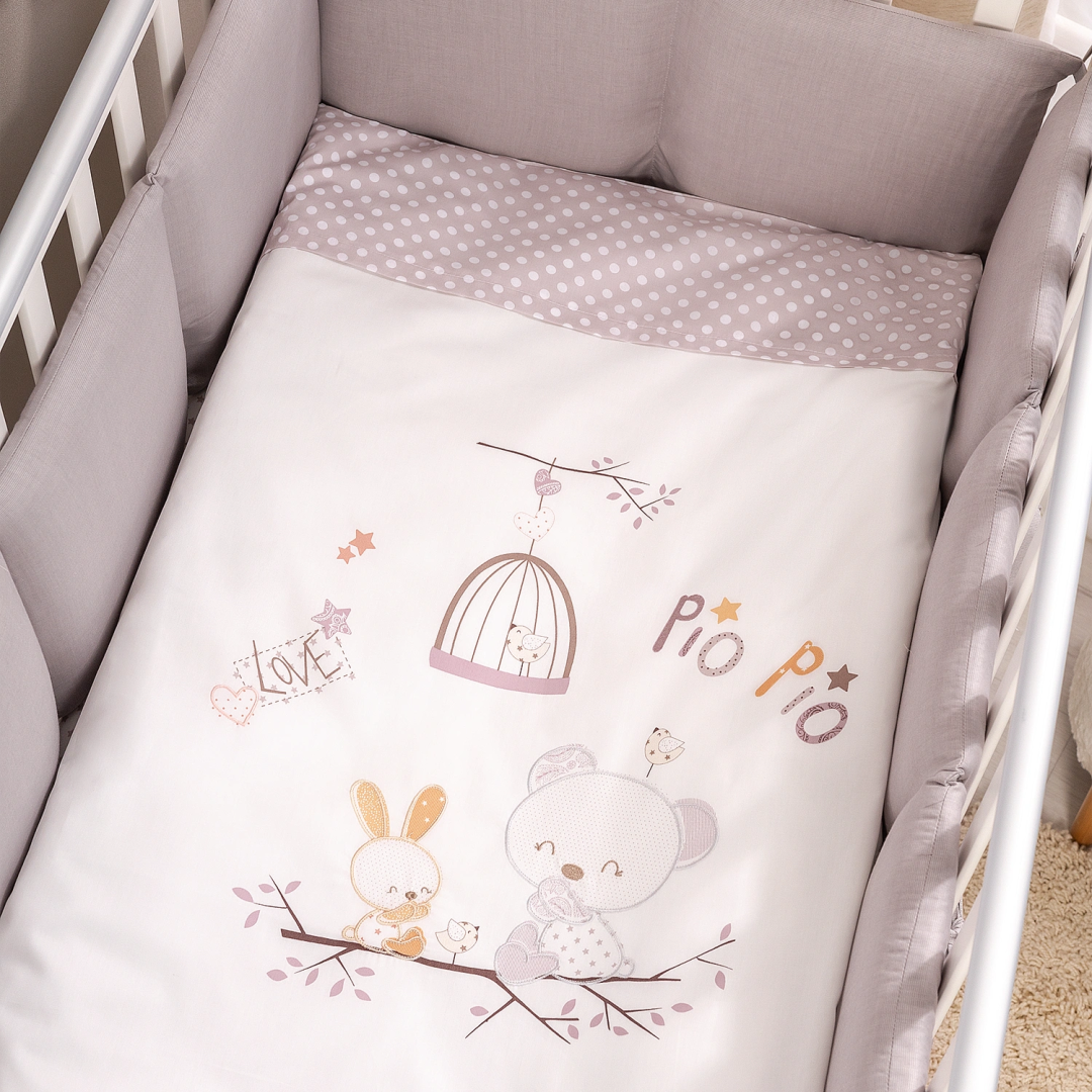 Комплект постельного белья Perina Pio Pio — это сочетание безупречного качества и нежного дизайна, созданное специально для здорового сна вашего малыша. Благодаря использованию элитного сатина, белье дарит ощущение мягкости и заботы с первых дней жизни.