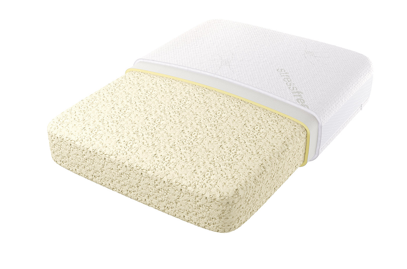 Гранулы MemoryFoam, цельный пласт MemoryFoam, съемный чехол из мягкого трикотажа Stressfree, боковые вставки из аэраторной 3D-сетки.