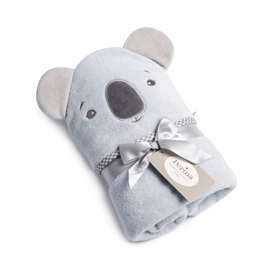 Мягкое детское полотенце из натурального хлопка (micro cotton) с дружелюбным Коалой на капюшоне. С таким полотенцем ванные процедуры станут увлекательной игрой, а прикосновения пушистого хлопка и велюровой аппликации доставят настоящее удовольствие.