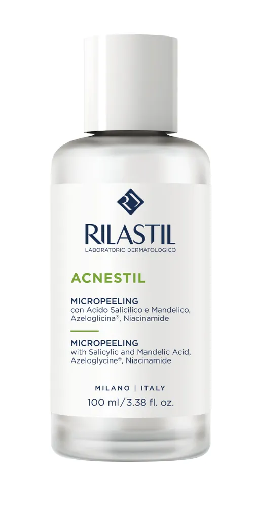 Rilastil ACNESTIL Микропилинг — профессиональный итальянский лосьон для мягкого отшелушивания и обновления кожи, склонной к жирности и акне. Средство эффективно очищает поры, выравнивает текстуру, устраняет тусклый оттенок и предупреждает появление воспалений. Идеально подходит для ежедневного ухода за жирной, комбинированной и проблемной кожей.