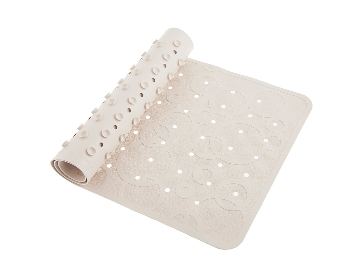- Оптимальный размер коврика делает его доступным для использования в любых ваннах, как в больших, так и в детских ванночках.