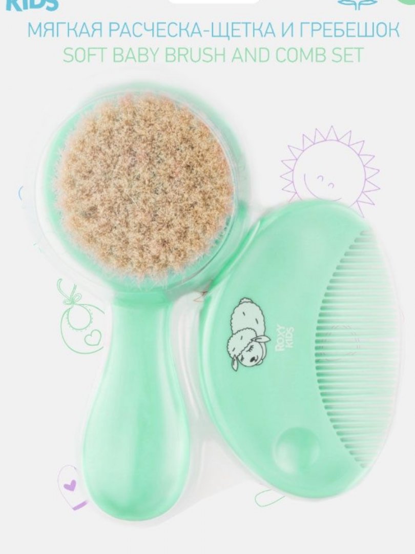 Расческа-щетка с мягким ворсом из натуральной овечьей шерсти и удобный гребешок ROXY-KIDS предназначены для малышей и новорожденных. Мягкая пушистая щетка имеет удобную эргономичную ручку, улучшает кровообращение кожи головы, не царапая её. Нежный массаж расслабляет и успокаивает малыша перед сном, а стимуляция волосяных луковиц ускоряет рост первых волос вашего крохи. Натуральная щетка из овчины позволит пригладить волосики и придать им аккуратный вид. А с помощью гребешка с частыми закругленными зубчиками удобно расчесывать запутавшиеся и скатавшиеся волосы. Набор для расчесывания ROXY-KIDS отличает приятный дизайн, прочность и экологичность материалов. Гребешок и расческа-щетка отлично дополняют друг друга, и в дальнейшем с их помощью вы сможете научить ребенка причесываться самостоятельно.