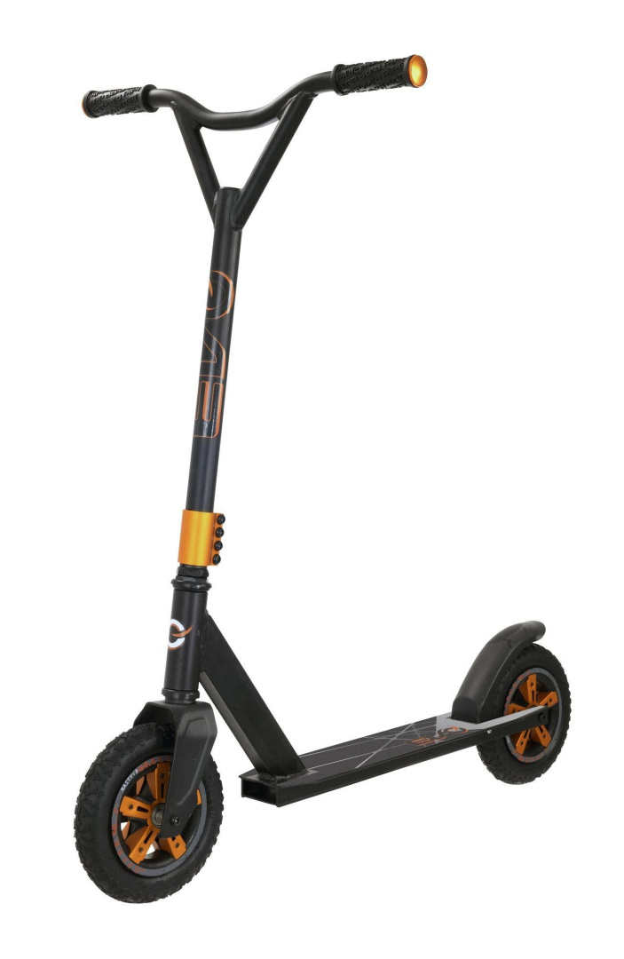Если вы ищете практичный и стильный самокат для вашего ребенка, вам подойдет EVO DIRT RIDER оранжевого цвета. Прокатитесь по улицам на EVO DIRT RIDER или просто покатайтесь по бездорожью, и вы поймете как он справляется со своей задачей! Оранжевый цвет самоката идеально подходит как для мальчиков, так и для девочек. DIRT RIDER — идеальный выбор для любого ребенка, которому исполнилось 6 лет и он готов к более взрослому стилю самоката. Самокат EVO DIRT RIDER имеет высоту ручки 90 см, прочную раму из стали и сплава, алюминиевую деку, зажим на 4 болтах. Оснащен пневматическими колесами 2x200 мм с подшипниками ABEC-5 и задней тормозной системой. Ручки самоката из TPR имеют глубокие канавки, которые предотвращают скольжение даже при использовании их мокрыми руками. Ребенок обеспечен оптимальным комфортом во время езды.
