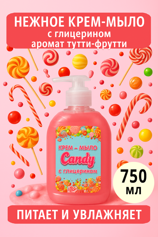 Крем-мыло CANDY — это идеальное решение для тех, кто ценит нежность и эффективность. С нежным ароматом сладких конфет и усиленной увлажняющей формулой на основе глицерина, это мыло нежно очищает кожу, сохраняя ее естественную влагу. Объем 750 мл с удобным дозатором обеспечивает длительное использование и экономичность.