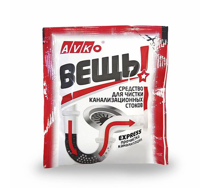 AJM «ВЕЩЬ!» — мощное щелочное средство для устранения засоров в трубах, обеспечивающее быстрый результат при соблюдении инструкции.