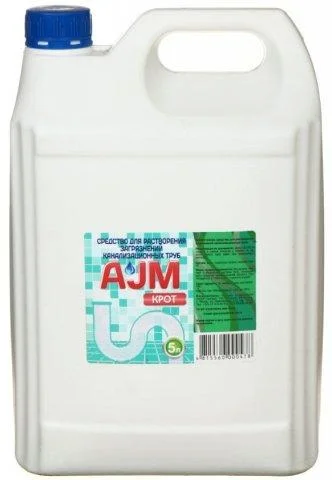 Крот AJM 5л — надёжное и эффективное средство для очистки канализационных труб, которое быстро растворяет засоры, предотвращает повторное образование загрязнений и поддерживает чистоту водопровода. Поддержите исправную работу канализации уже сегодня!