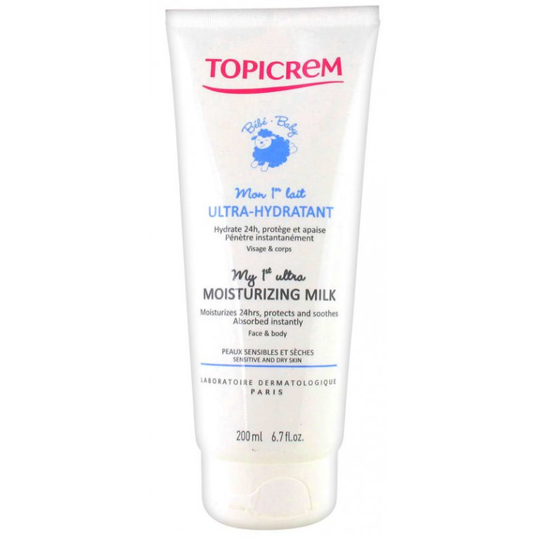 TOPICREM Мое 1-ое Ультра-увлажняющее молочко создано для сухой и чувствительной кожи и идеально подходит для ухода за кожей детей с первых дней жизни. Обеспечивает глубокое увлажнение на 24 часа и поддерживает естественный гидролипидный барьер кожи.