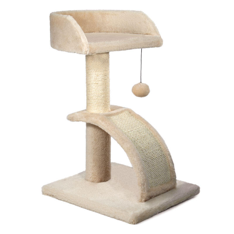 Этот уютный игровой комплекс подходит для кошек любого возраста, но особенно придется по вкусу молодым и активным. Комплекс оснащен столбиком-когтеточкой и мостиком когтеточкой, а обзорная полочка и шарик на веревочке не оставят равнодушным вашего питомца. Цвет: серый и бежевый. Размер комплекса: 340х310х520мм.