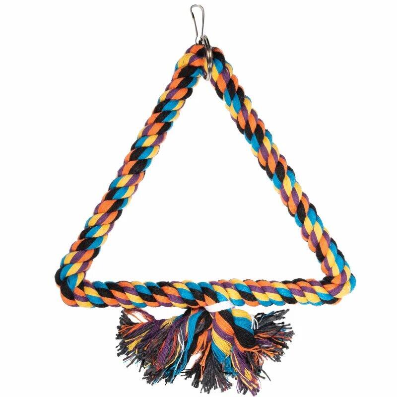 Качели для птиц с карабином для крепления. Верёвочные игрушки необходимы каждой птице. Птица не только точит когти и клюв, она может лазить по ним, укрепляя мышцы и поддерживая свой организм в тонусе.