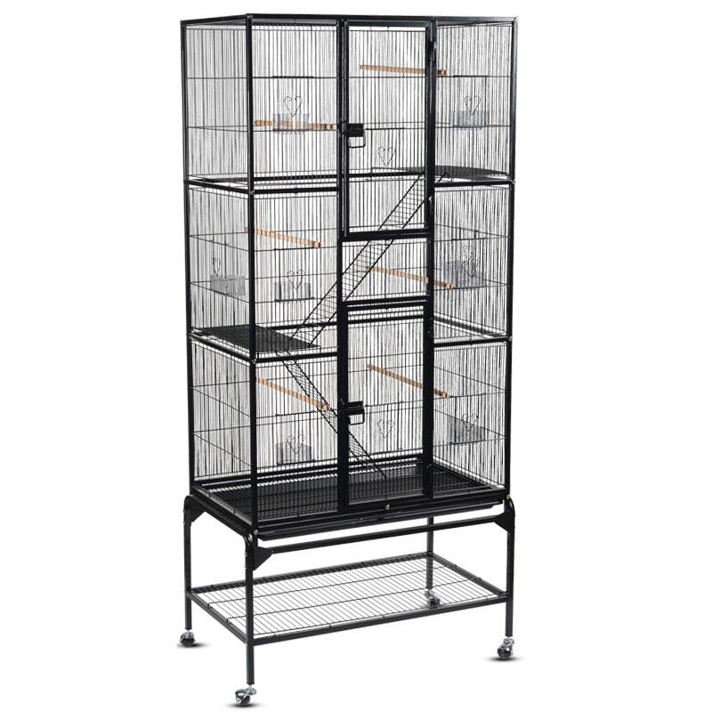 Стальная клетка на колесах для птиц и попугаев крупных размеров.