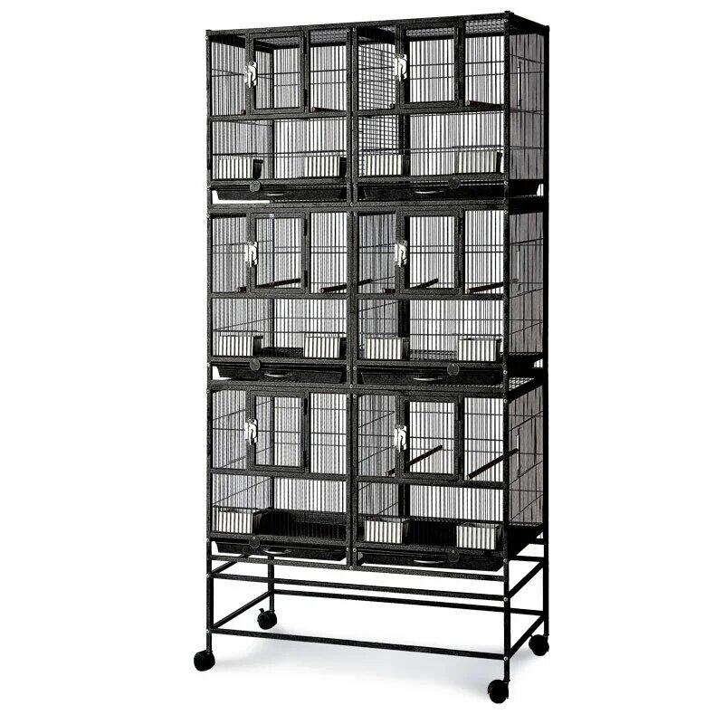 Металлическая клетка на колесах с изолированными секциями, разделенными металлическими перегородками. Клетка имеет удобный доступ к каждой секции, которые надежно запираются и имеют отдельные дверцы, оборудованные замками. Эмалированные прутья изделия не гнутся, не облупляются и не гремят. Каждая секция оснащена кормушками, жердочками и выдвижными поддонами.