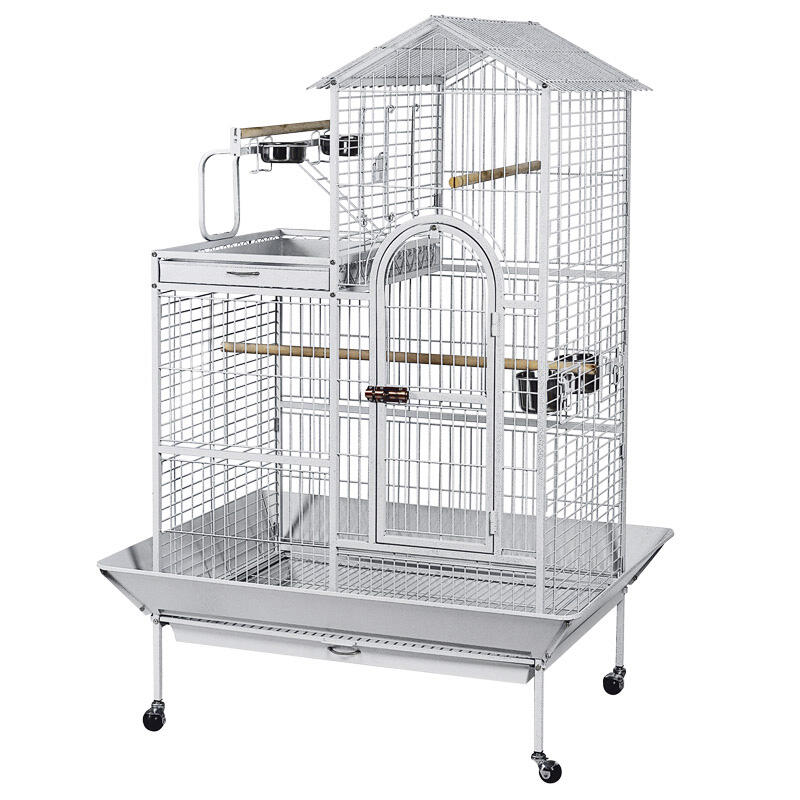 Клетка на колесах, предназначенная для птиц и попугаев крупных размеров. Ее эмалированные прутья не гнутся, не облупляются и не гремят. Клетка имеет большую удобную дверцу, надежно запирающуюся на плотный замок, а за счет дополнительной внешней конструкции выгуливать птиц можно прямо на крыше изделия. Клетка также оборудована специальным выдвижным поддоном.