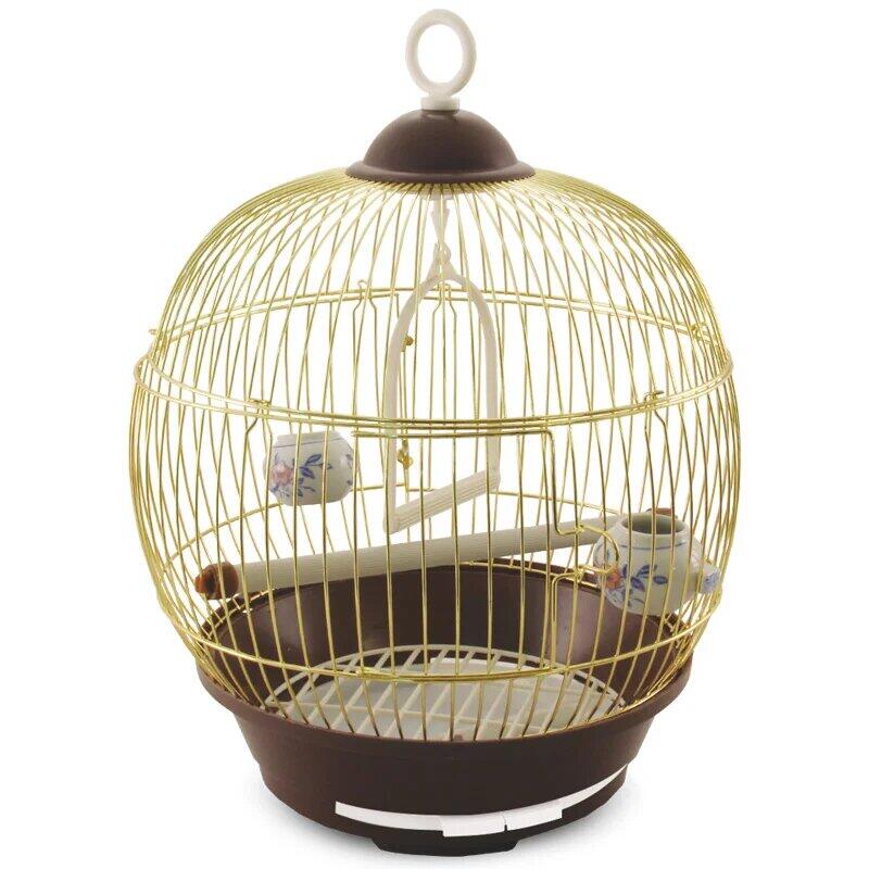 Круглая эмалированная клетка для птиц небольших размеров.