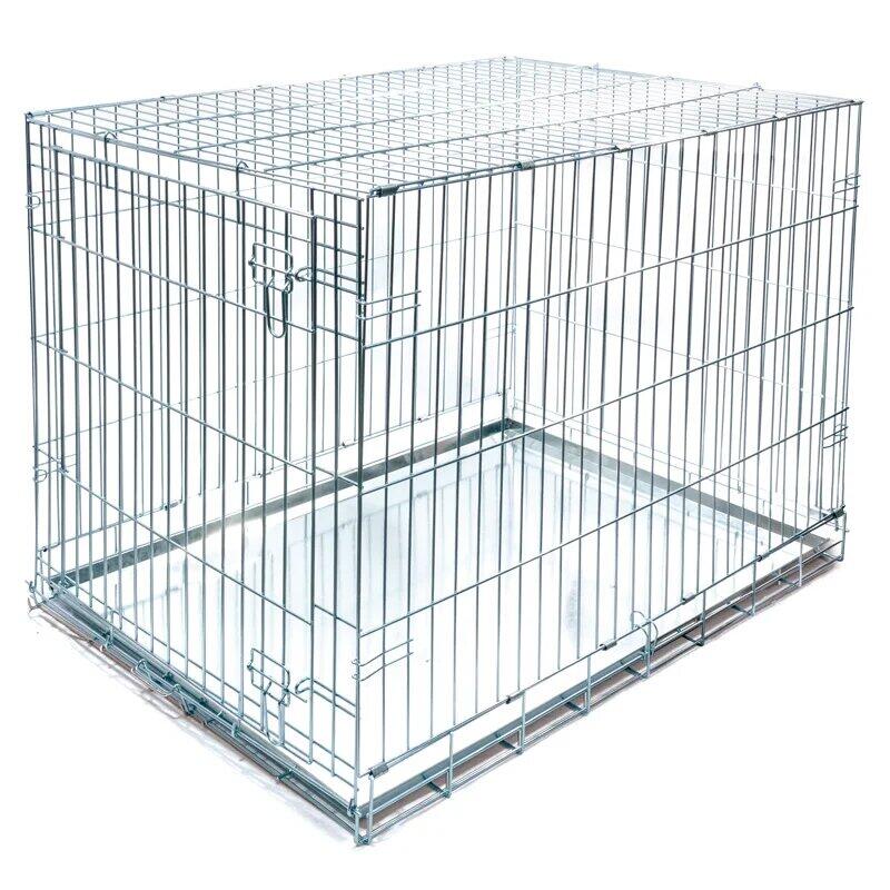 Клетка для животных оцинкованная. Легко собирается и разбирается. Поддон металлический выдвигается со стороны двери клетки. Подходит для временного содержания крупных животных, выставки, перевозки. Доступ в клетку через дверь, которая закрывается на надежный засов. Оцинкованная клетка обладает высоким уровнем коррозийной стойкости. Расстояние между прутьями 38,1мм. Толщина прутьев каркаса и поперечных линий клетки 4,3мм. Толщина продольных прутьев клетки 3,4мм.