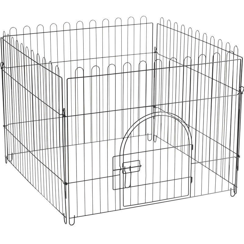 Клетка для животных эмалированная. Размер между прутьями 34,9мм. В комплекте 4 панели, одна из них с металлической дверцей, с надежным защищенным запором-задвижкой, которая открывается на 180 градусов, плотно прижимаясь к стенке. Секции соединяются между собой при помощи штыря-спицы, которая входит в специальные ушки на краях секций (вдоль боковой стороны). Высота дверцы вольера 40 см от нижней планки, 45 см от пола. Подходит для кошек, собак, кроликов и других животных.