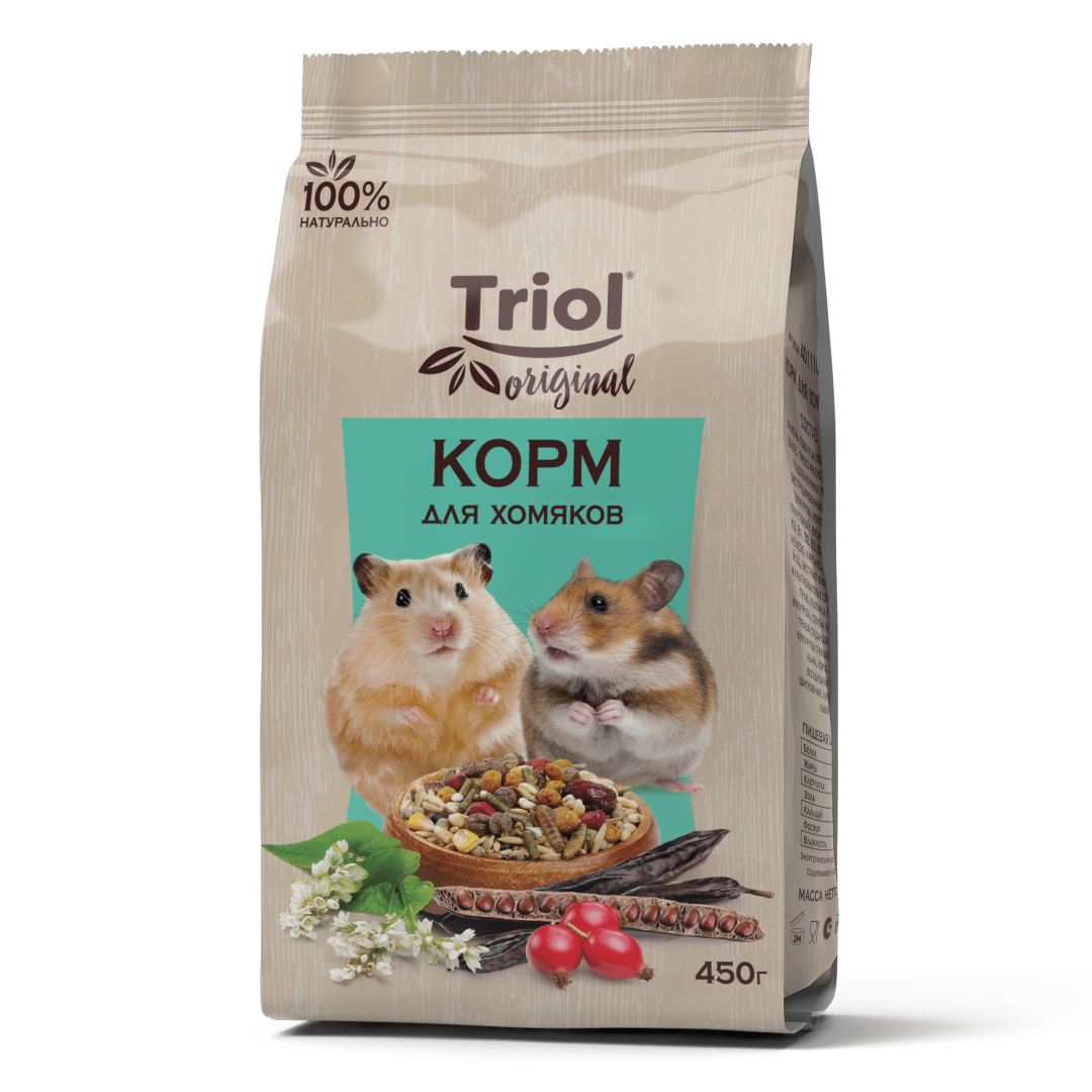 Полнорационный корм, разработанный специально для хомяков. Изготовлен исключительно из натуральных ингредиентов Мы улучшили и разнообразили состав корма и добавили в него: Мультизлаковые гранулы (сбор луговых трав, пшеница, ячмень, кукуруза, семена льна) Кукурузу плющеную для того, чтобы питомец не поцарапал и не повредил десны и зубки. Сафлор – ценный источник витамина F, который заботится об эластичности кровеносных сосудов и состоянии организма в целом. Экструдированные шарики (кукуруза, морковь, мел природный, Витамин А, D3, Е, К3, В1, В2, В3, В5, В6, В12, Н, железо, марганец, цинк, медь, йод, экстракт юкки) Кэроб содержит много полезных минеральных веществ, богат витаминами группы B, кальцием, железом и магнием. Личинка черной львинки – источник белка, который легко усваивается и способствует здоровому росту и развитию организма.