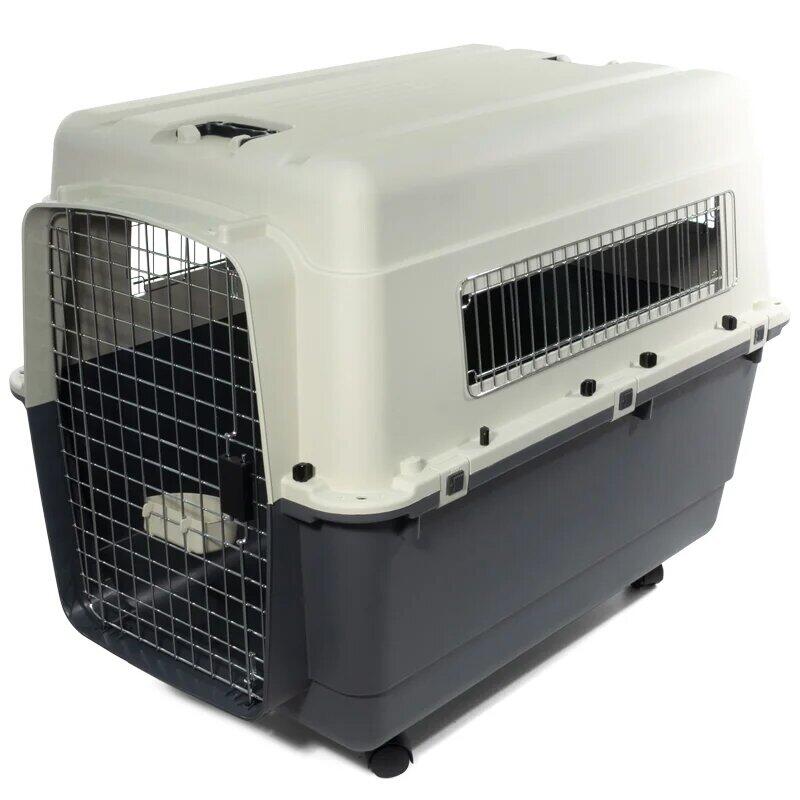 Переноска изготовлена из высококачественного и сверхпрочного пластика; снабжена надежными, скрепляющими корпус винтами и защелками, запираемой металлической дверцей, крепкой и прочной пластиковой ручкой, а также вентиляционными решетками и миской. Колеса в комплектацию изделия не входят и приобретаются отдельно. Изделие одобрено Международной Ассоциацией Воздушного Транспорта (IATA). Максимально допустимая нагрузка: 38кг.