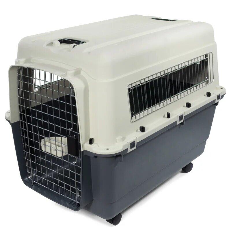 Переноска изготовлена из высококачественного и сверхпрочного пластика; снабжена надежными, скрепляющими корпус винтами и защелками, запираемой металлической дверцей, крепкой и прочной пластиковой ручкой, а также вентиляционными решетками и миской. Колеса в комплектацию изделия не входят и приобретаются отдельно. Изделие одобрено Международной Ассоциацией Воздушного Транспорта (IATA). Максимально допустимая нагрузка: 50кг.